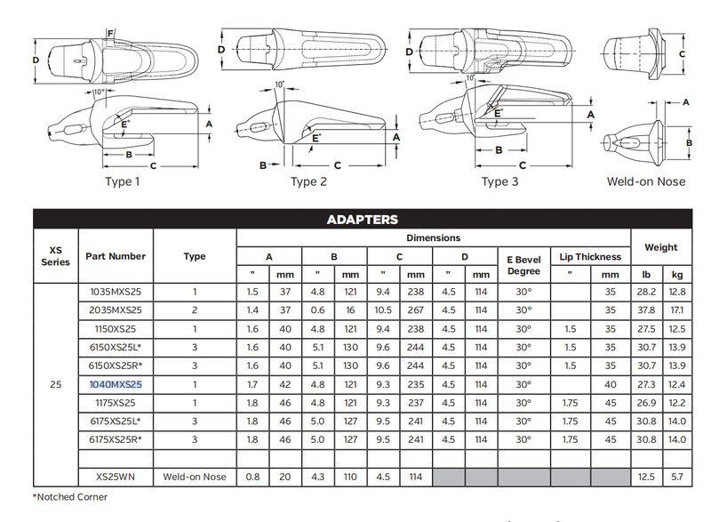 1035MXS25 Shroud Adapter for XS25 Series Bucket Teeth | Fits Komatsu PC300-8 Excavator | Heavy-Duty Construction