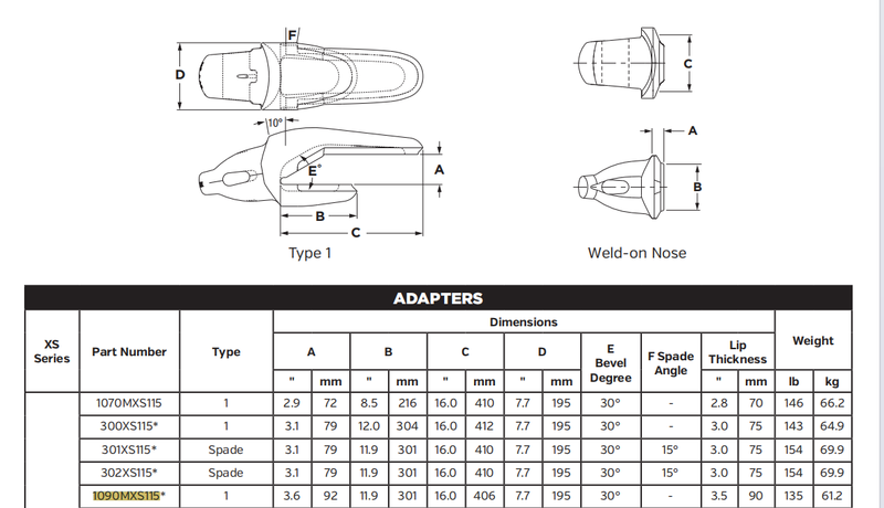 1090MXS115 Heavy-Duty Shroud Adapter for XS115 Series Bucket Teeth | Fits 495HR & 6090 Mining Shovels | High Strength Alloy Steel