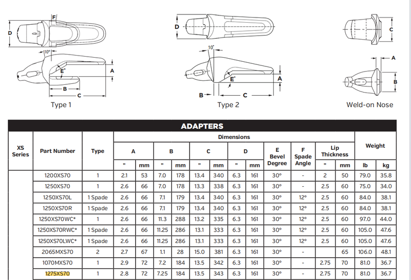 1275XS70 Heavy-Duty Shroud Adapter for XS70 Series Bucket Teeth | Fits Liebherr R9800 R9100 Mining Shovels | Ultra High Strength Alloy Steel