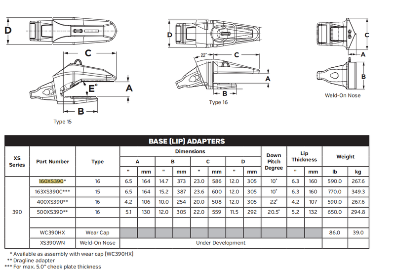 160XS390 Heavy-Duty Tooth Adapter for Mining and Earthmoving Equipment