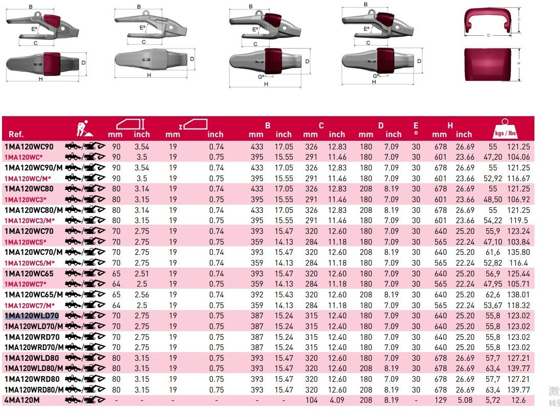 1MA120WRD70 Mining Bucket Tooth Adapter RH
