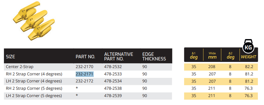 The 4232-2171 is a adapter built to deliver extreme abrasion and impact resistance in large-scale mining and quarrying operations. Designed for Caterpillar Excavators wheel loaders, this adapter incorporates an advanced bevel angle and reinforced structure to optimize stress distribution and protect the bucket lip. Manufactured from high-strength alloy steel, it guarantees long-lasting performance under the most demanding working conditions.