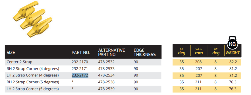The 232-2172 is a adapter built to deliver extreme abrasion and impact resistance in large-scale mining and quarrying operations. Designed for Caterpillar Excavators wheel loaders, this adapter incorporates an advanced bevel angle and reinforced structure to optimize stress distribution and protect the bucket lip. Manufactured from high-strength alloy steel, it guarantees long-lasting performance under the most demanding working conditions.