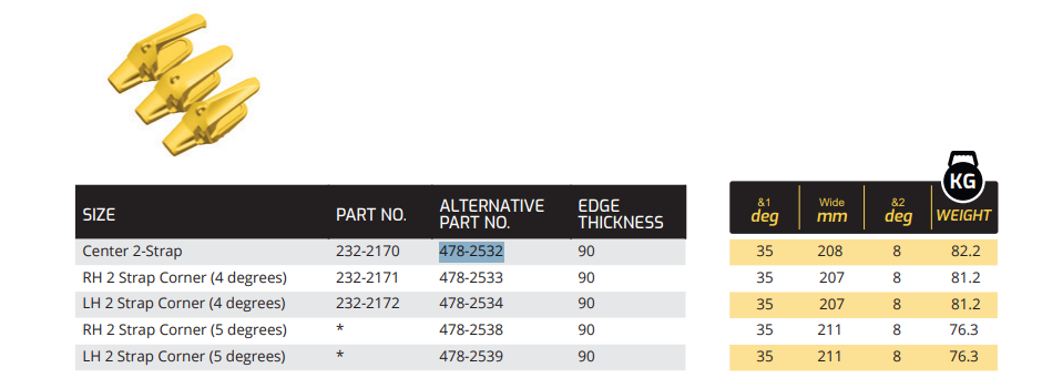 The 478-2532 is a adapter built to deliver extreme abrasion and impact resistance in large-scale mining and quarrying operations. Designed for Caterpillar Excavators wheel loaders, this adapter incorporates an advanced bevel angle and reinforced structure to optimize stress distribution and protect the bucket lip. Manufactured from high-strength alloy steel, it guarantees long-lasting performance under the most demanding working conditions.