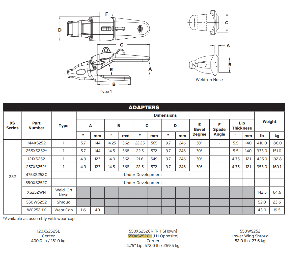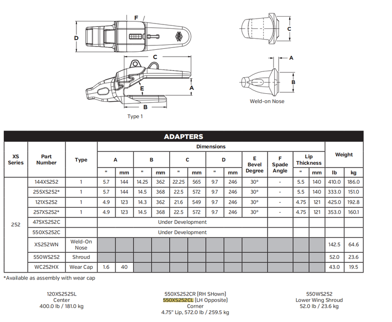 Home / Ground Engaging Tools(GET Parts) / Bucket Teeth & Adapters / Excavator / 550XS252CR Adapter - Compatible with Excavators and Loaders