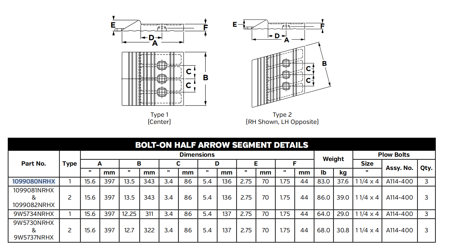 | Type | Bolt-On Half Arrow Segment |