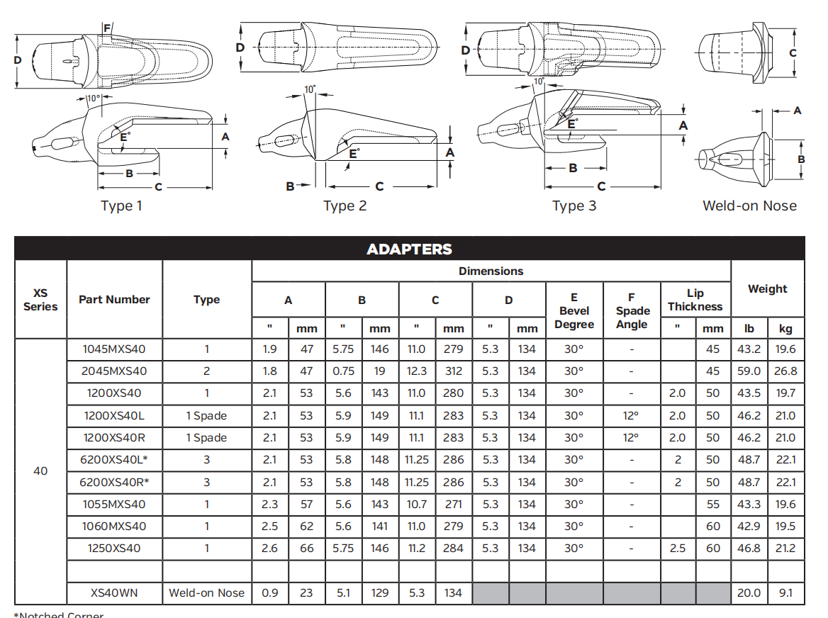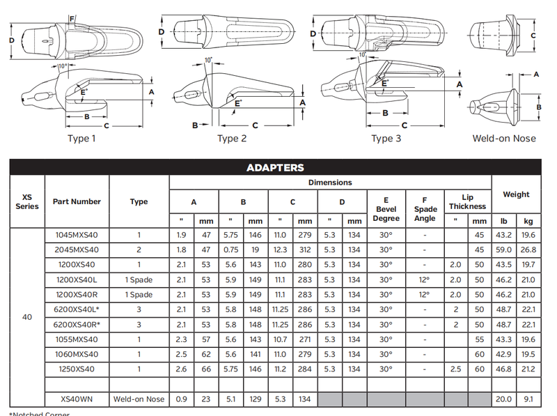 Bucket Adapter 2045MXS40 for Mining Excavator and Loader - Adapter for Ground Engaging Tools (GET)