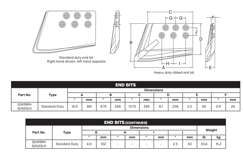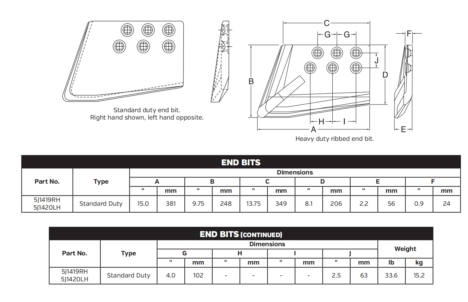CAT Dozer End Bit (LH) | 5J1420LH | Left Hand Blade End Bit for Caterpillar Dozers