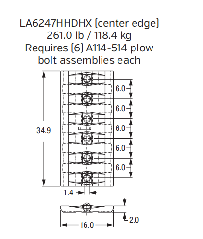Home / Ground Engaging Tools(GET Parts) / Blade / Grader Blade / Cast Edge / Wear Plate LA6247HHDHX for Volvo L350 / L260H Wheel Loader Bucket