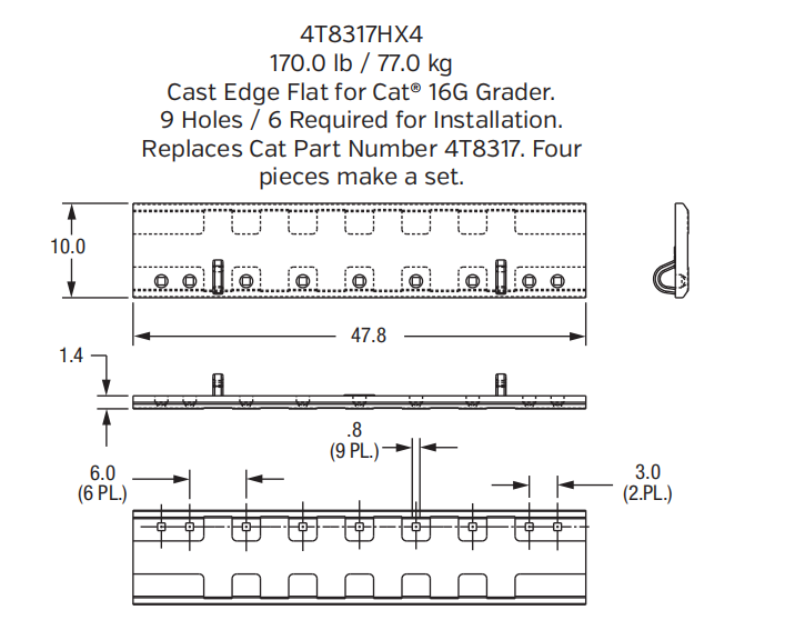 Cast Grader Blade 4T8317HX4 for Caterpillar 120 / 140 Motor Grader