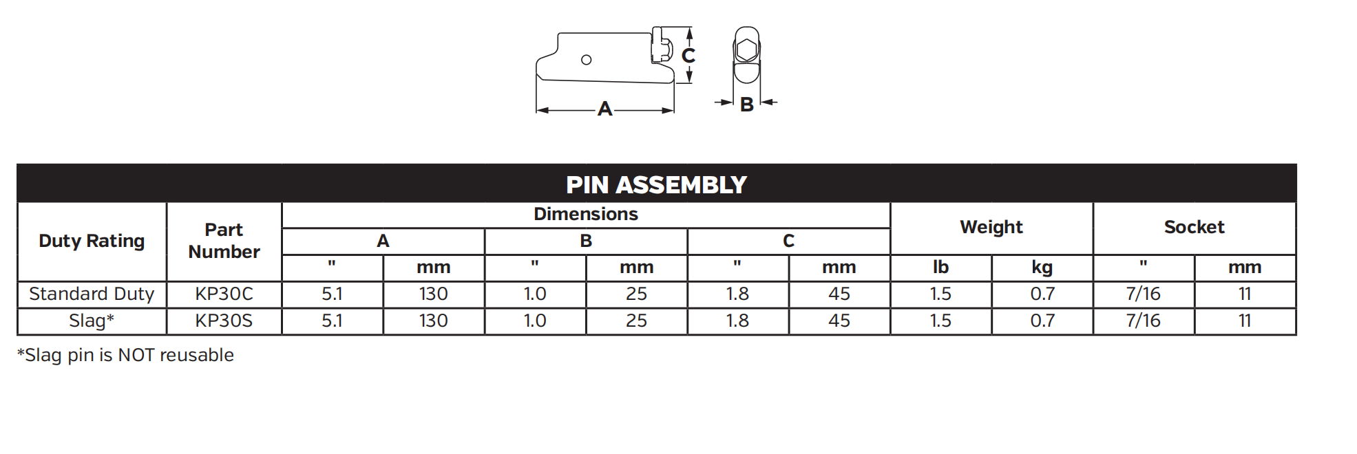 KP30C Locking Pin for 30 Series Bucket Teeth – Ultra Heavy-Duty Secure Fit