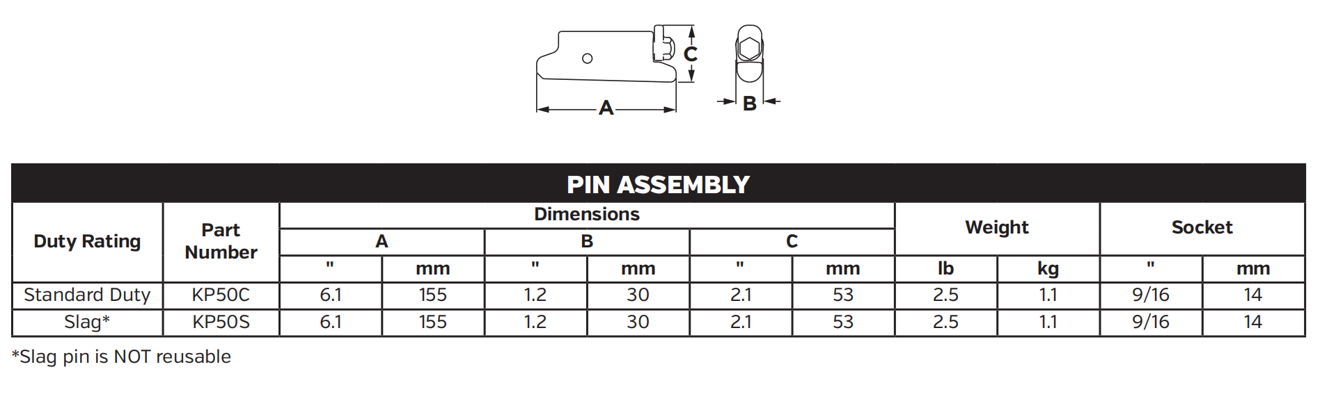 KP50C Cotter/Retention Pin for Komatsu 50 Series Bucket Teeth & Adapters
