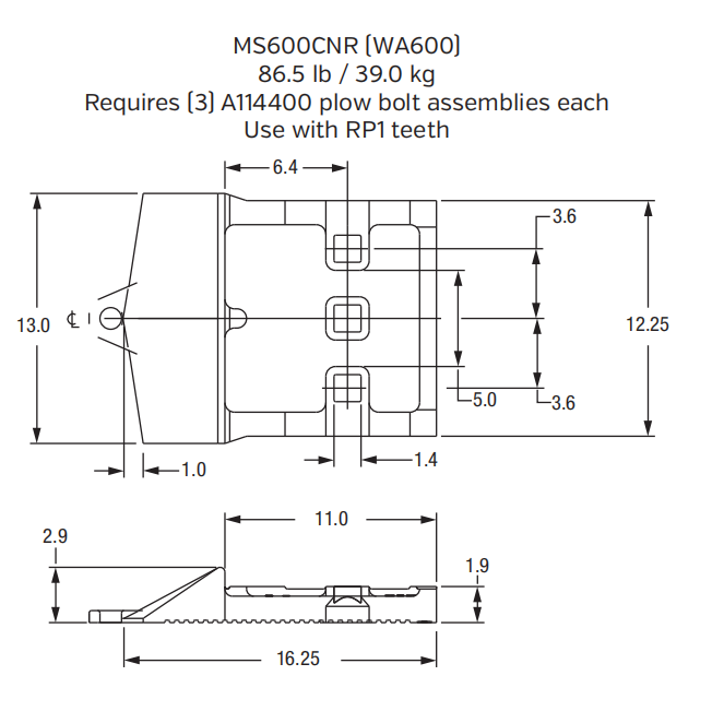 | Application | Mounts to bucket lip to secure replaceable teeth |