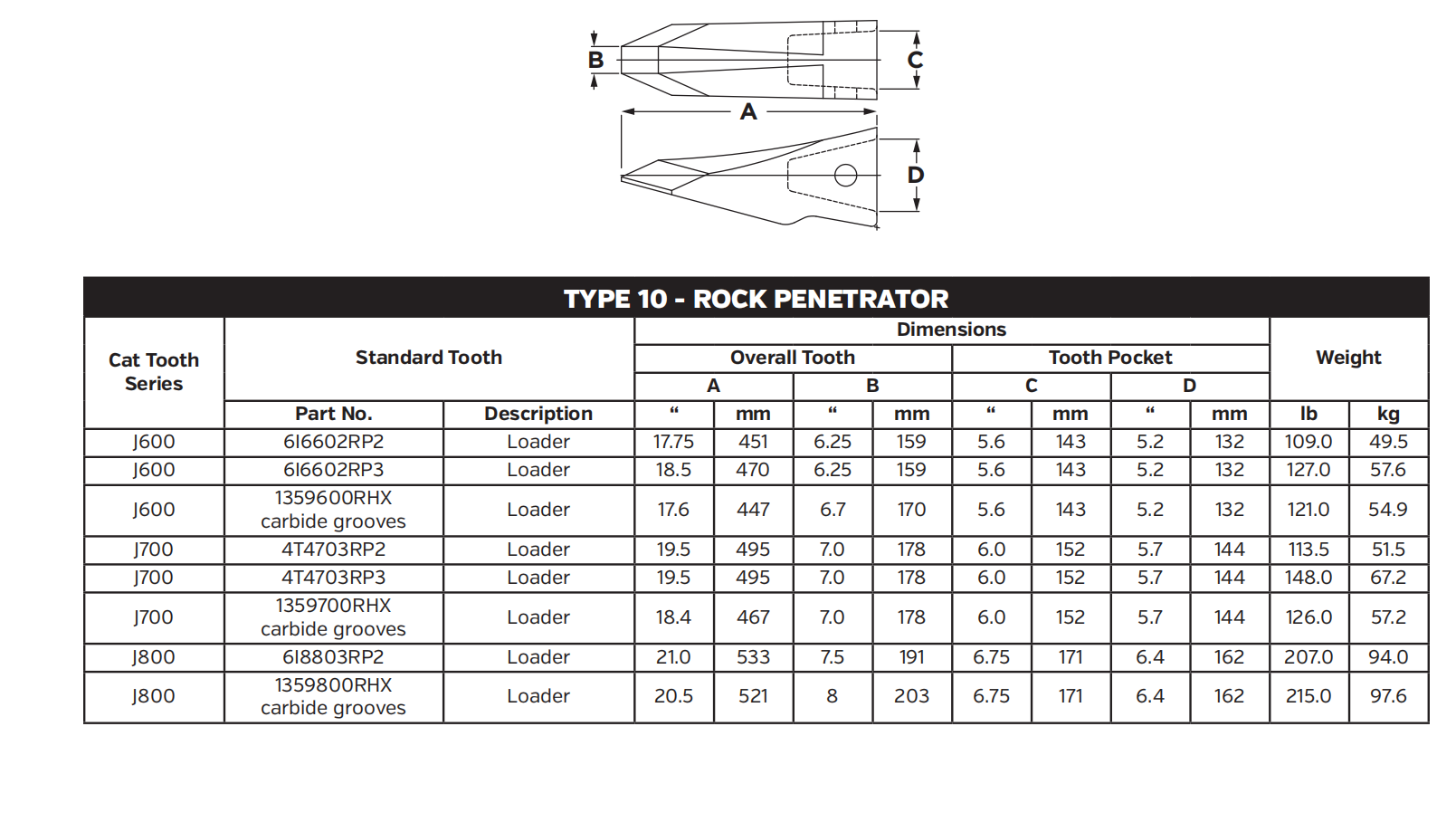 Tooth 1359600RHX for Komatsu PC400 / PC450 Excavator Bucket