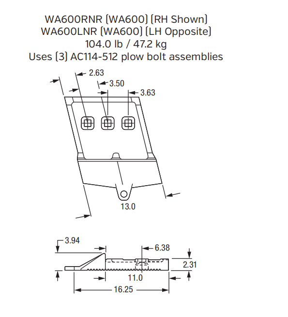 | Part Number | WA600LNR |
