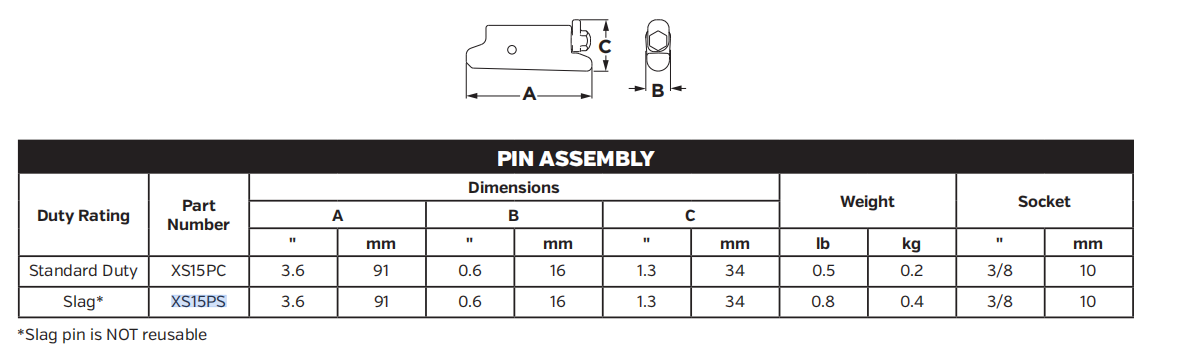XS15PS Locking Pin for XS15 Series Bucket Teeth | Fits Komatsu PC138US-10 Excavator | High Tensile Steel Construction