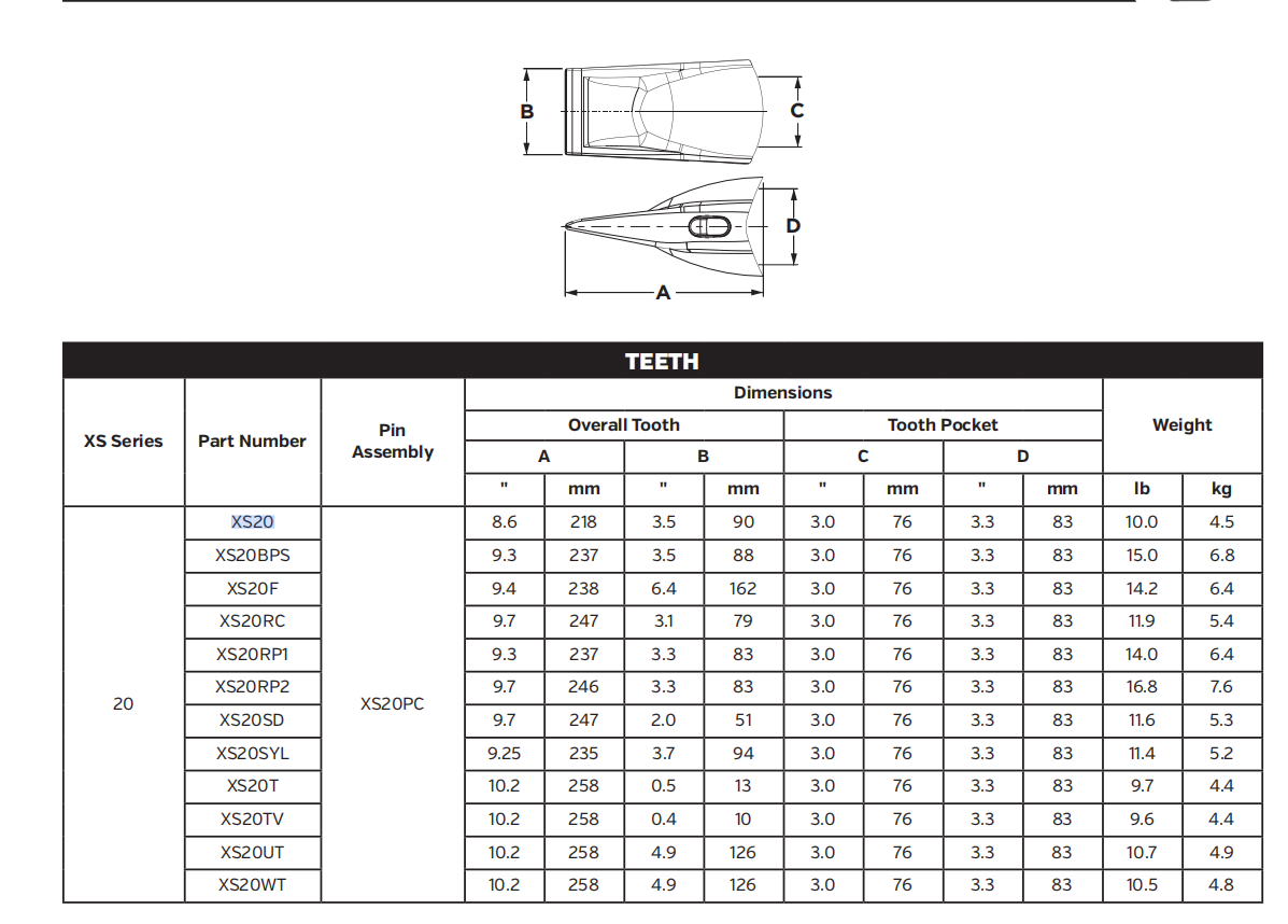 Home / Ground Engaging Tools(GET Parts) / Bucket Teeth & Adapters / Excavator / XS20RP2 Bucket Teeth for Komatsu PC200-8 Excavator | High Abrasion Resistance Alloy Steel