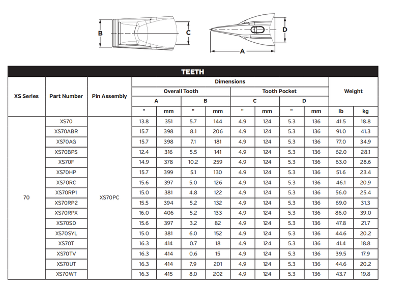 Home / Ground Engaging Tools(GET Parts) / Bucket Teeth & Adapters / Excavator / XS70 Bucket Tooth Point | Tip for XS70 Adapter System | Fits Caterpillar 390 Excavator | Heavy-Duty Mining